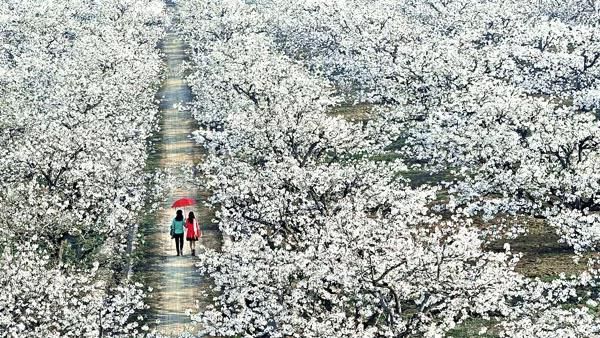 跑在芬芳梨园,相约浪漫花海