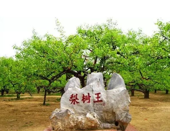 砀山被誉为“世界梨都 果海绿洲”,酥梨种植面积近百万亩,栽培历史已有2000多年,据统计,全县百年以上的古梨树达6万多株。梨园中间,被誉为“梨树王”的一株老梨树,华诞已一百八十余岁,占地0.3亩,年产酥梨4000余斤。
