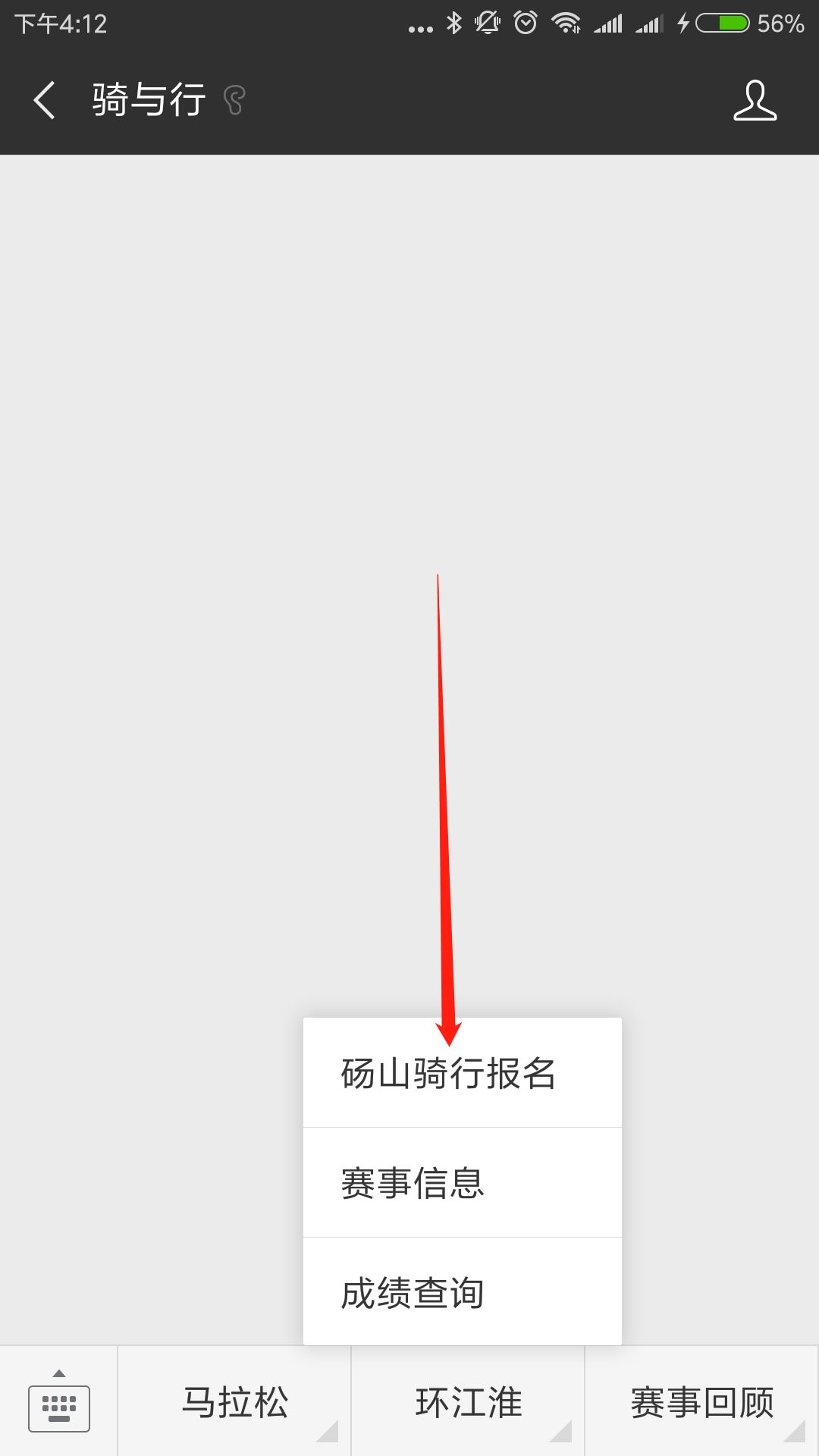 ▲关注“骑与行”官方微信,查看下方菜单栏“环江淮”,点击“砀山骑行报名”链接,进入报名系统。(在骑与行官方赛事平台报名,可享受八折优惠)